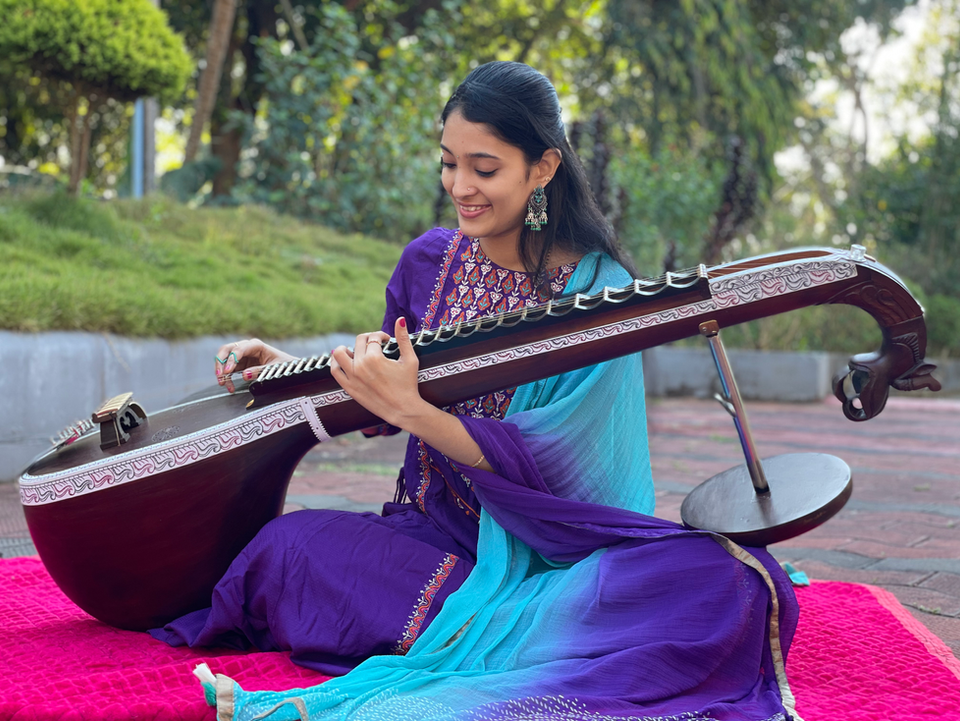 Disha Rao is a gifted Carnatic Music artist and Veena virtuoso, born into a family of esteemed musicians. Her musical journey began at the tender age of 7, inspired by her grandfather, Bhujang Rao, a renowned violin and JalTarang master, and her father, Prakash Rao, a celebrated vocalist and keyboard artist. Disha's fascination with the Veena led her to pursue it with dedication, completing both her junior and senior exams in Veena by the age of 18. Currently, she is honing her skills under the guidance of Dr. Suma Sudhindra, striving for excellence in Veena.