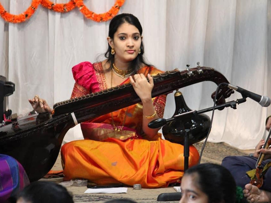 With over 200 performances across India and the USA, Disha has established herself as a sought-after Veena recitalist. Her passion for sharing her art has led her to mentor over 100 students, including 30+ in the Bay Area, where she has also given numerous successful programs at prestigious venues. Holding a Master's degree in Commerce, Disha has devoted herself full-time to her Veena and music, inspiring a new generation of musicians by mentoring over 30 students in Bay Area. Disha's exceptional talent, dedication, and passion make her a shining star in the world of Carnatic Music, destined to leave a lasting impact on the musical landscape. Notably, she has mastered a unique style of playing modern melodies on the Veena, in addition to her mastery of traditional Carnatic classical music. This innovative approach has earned her recognition as a versatile and innovative Veena artist, pushing the boundaries of traditional music.